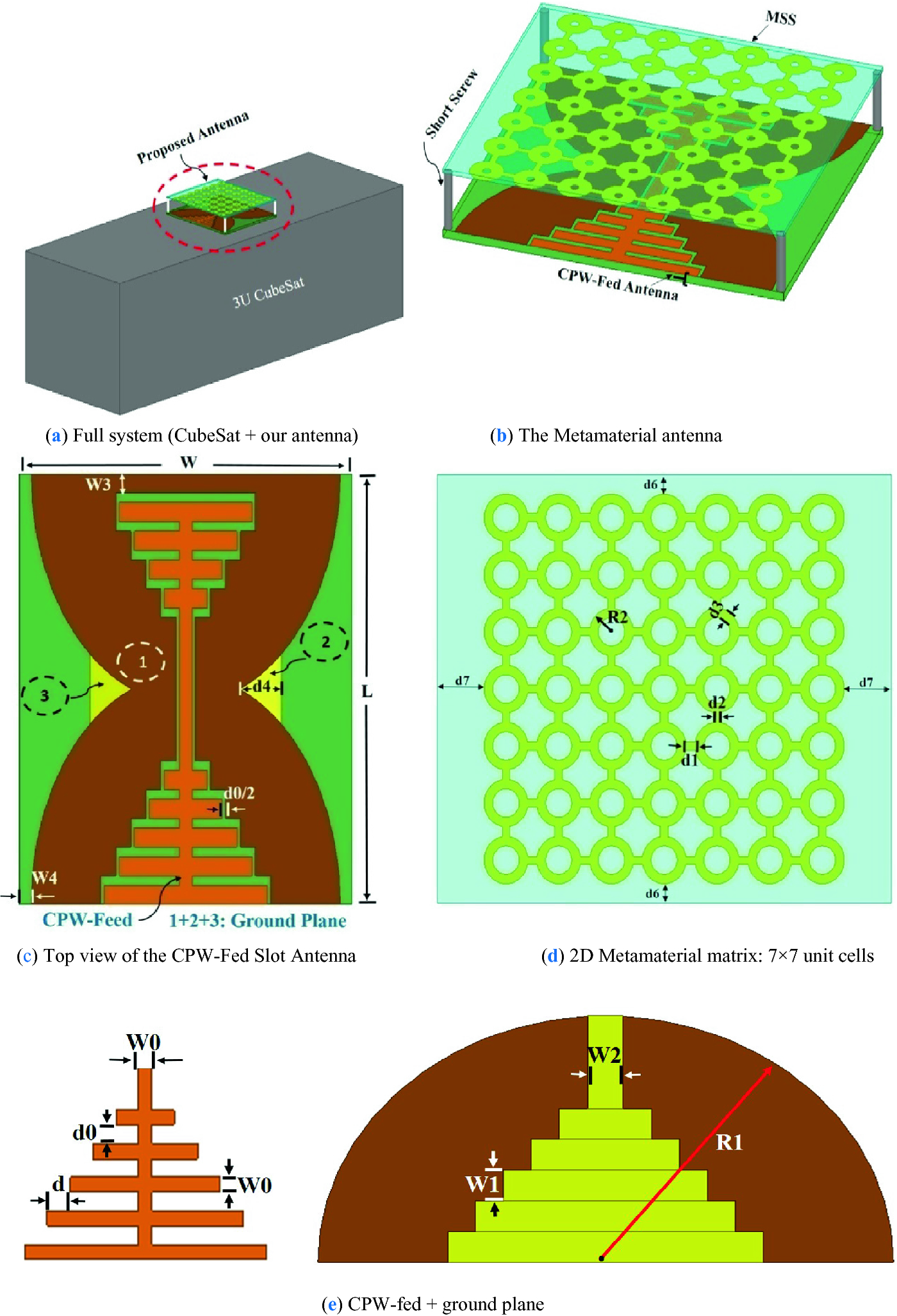 S-Band CPW-Fed Slot Antenna with 2D Metamaterials for CubeSat Communications | SpringerLink