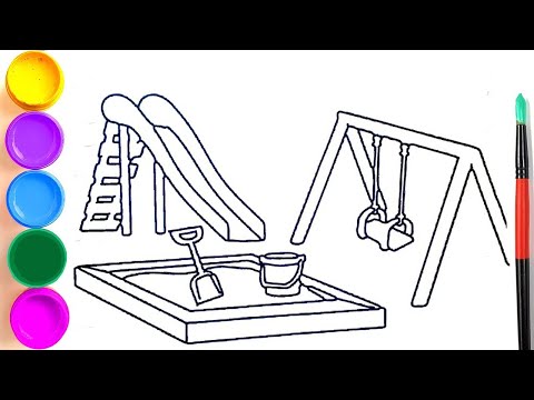 How To Draw A Playground With Slide And Swing Youtube